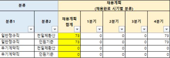 1. 정규직 채용 : 73명.