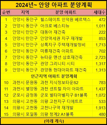 이렇게 2024년 안양시 아파트 분양계획을 표로 정리해서 알려드렸는데요.
