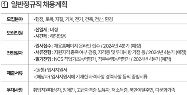 1. 모집 분야 : 행정, 토목, 지질, 기계, 전기, 건축, 전산, 환경.