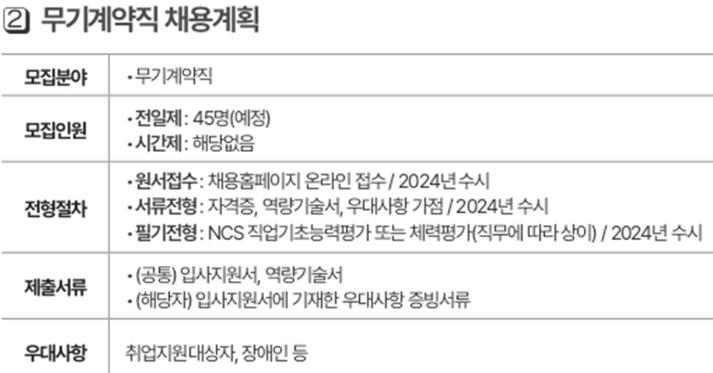 2. 무기계약직 채용 : 45명(연봉 2,800만원)