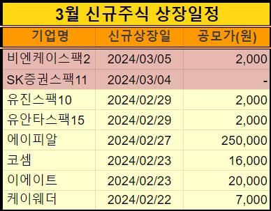 3월에 신규상장 예정인 주식들을 정리했습니다.