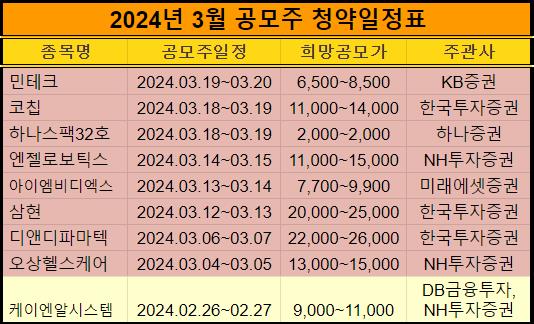 4. 공모주 청약일정 : 2024년 3월 6일~3월 7일.
