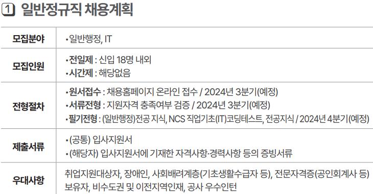 1. 모집 분야 : 일반정규직 (일반행정, IT)