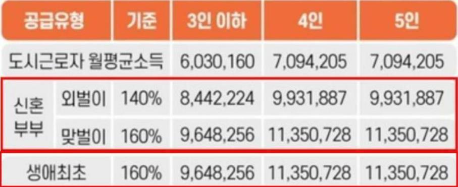 앞서 말씀드렸다싶이 1인가구 생애최초 특별공급 소득기준은 160% 이하입니다.