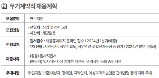 2024년 한국화학연구원에서는 무기계약직도 5명을 채용할 예정입니다.