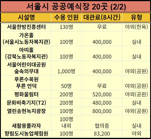 서울시에 공공예식장이 베스트 20곳을 선정했습니다.
