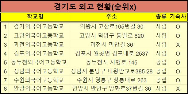 서울과 경기도를 제외하고는 외고는 각 지역별로 1~2곳만 있습니다.