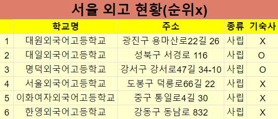 4. 서울외고(서울 도봉구 덕릉로66길 22) : 사립, 기숙사 없음.