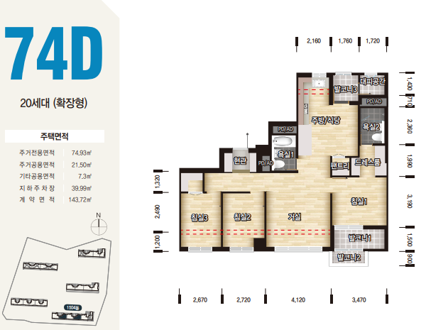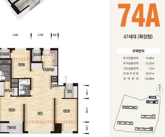 74D형의 경우 20세대수로 희귀한 물량이며, 방이 나란히 있으면서 마찮가지로 중간에 주방과 거실이 껴있어서 단란한 가족생활이 가능할것으로 보입니다.