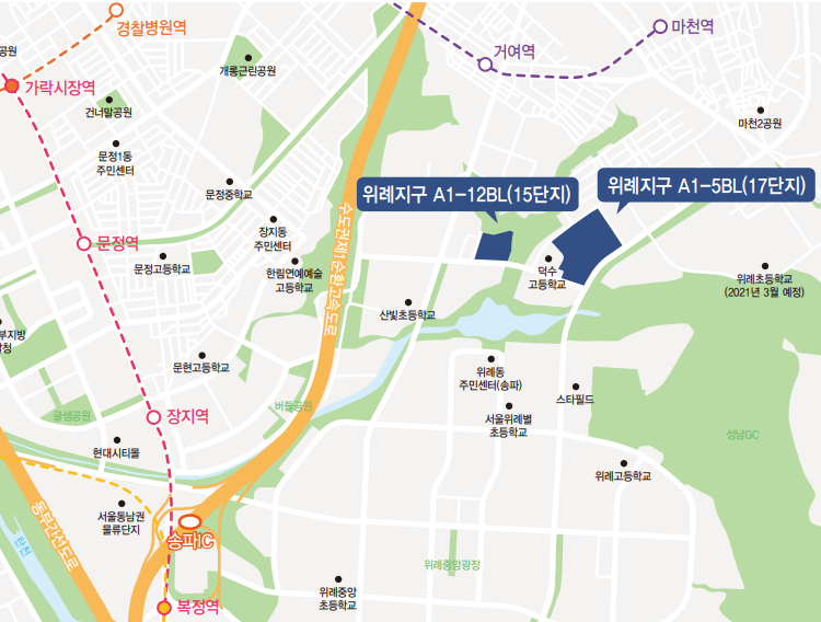2. 위례 a1-12 : 서울특별시 송파구 거여동 606번지에 분양되는 아파트 단지입니다.