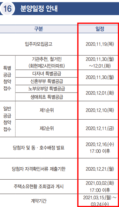 3. 다자녀, 신혼부부 특별공급 : 2020.11.30.월요일