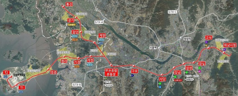 인천시 서북부 지역을 시작으로 서울 동쪽에 서울시 강남구 강남과 삼성동, 송파구 잠실, 강동구 고덕동, 하남시청까지 이어질 예정입니다.