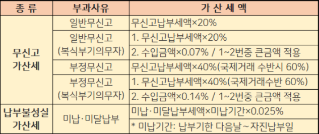 2021년 5월 종합소득세 신고방법과 기간, 대상을 알아보겠습니다. 우선 신고를 안하면 아래와 같이 무신고 가산세를 부과합니다. * 무신고 납부세액 세금의 20% 이상을 더 내야할수있습니다. 미신