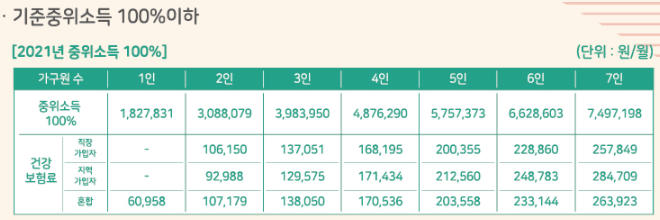 미취업 여성분의 경우에는 대부분 중위소득 100%에 해당되실겁니다.