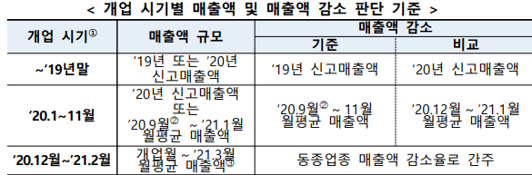3. 2020년12월~2021년2월 개업 : 동종업종 매출액 감소율 간주.