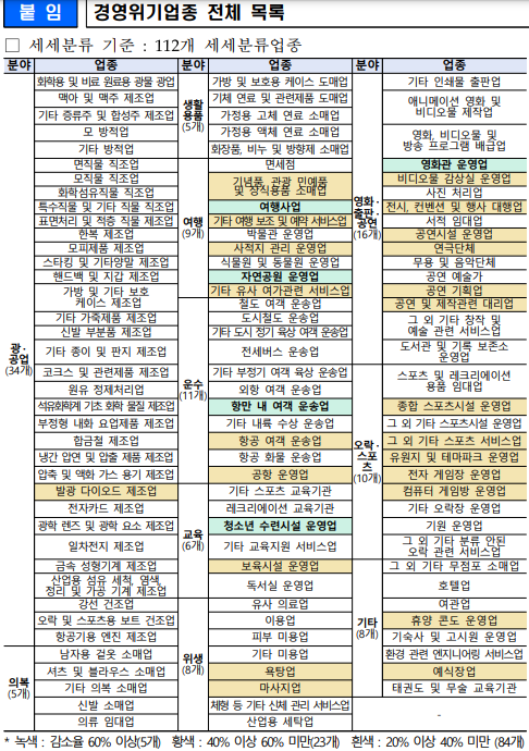이번 자영업자 4차 긴급 재난지원금 대상중 경영위기업종에 해당되는지 첨부해드린 표에서 참고하세요.