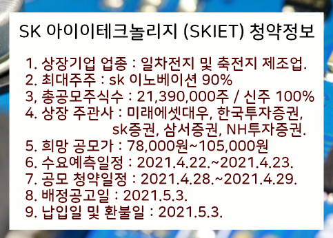 1. sk 아이이테크놀로지 공모주 상장 일정 및 청약정보, 공모가 등 전망 분석.