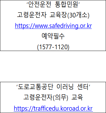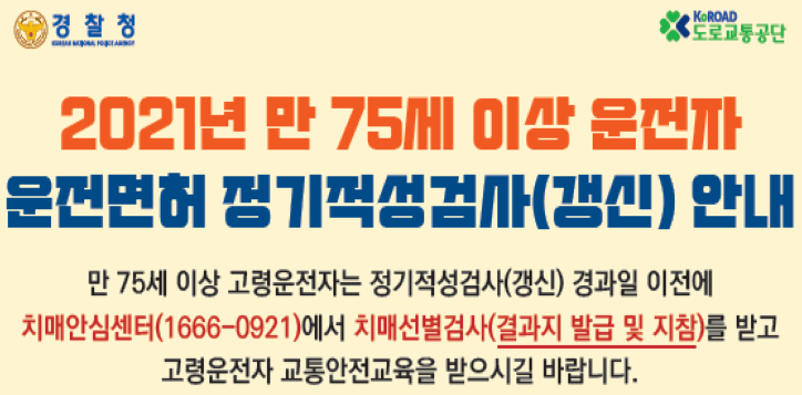 2021년 만 75세 이상 고령인 운전자는 면허 갱신 및 취득시에 꼭 고령운전자 교육안전교육을 받아야합니다.
