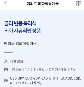 그리고 1년이상 10년이하의 기간으로 적립식 외환 통장입니다.