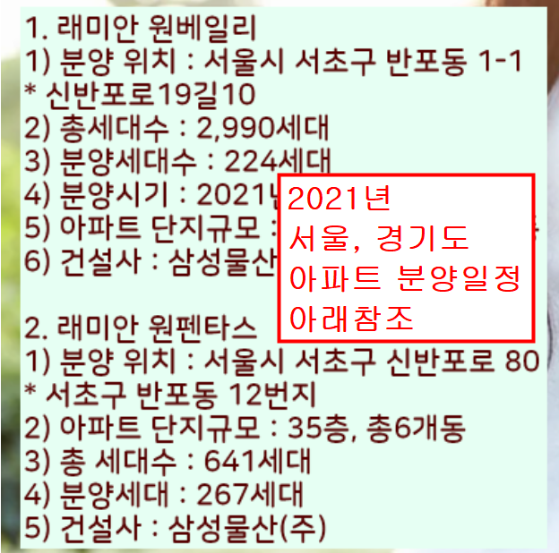 2021년 서울, 경기도 아파트 분양들을 일정을 모아놨으니 수도권 내집마련을 꿈꾸시는 무주택자분들에게 도움이 되었으면 좋겠습니다.