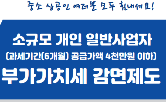 또한 가장 유용한 정보인 소규모 개인 일반사업자 부가가치세 감면 혜택을 알려드리겠습니다.