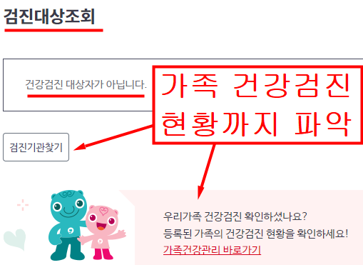 3. 검진기관 찾기와 가족건강관리까지 모두 체크가 가능하니 꼭 건강검진대상자분들은 이용하셨으면 좋겠습니다.
