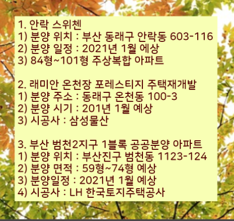 마지막으로 2021 부산 아파트 분양계획 및 일정을 참조하시는 분들을 위해서 알려드립니다.