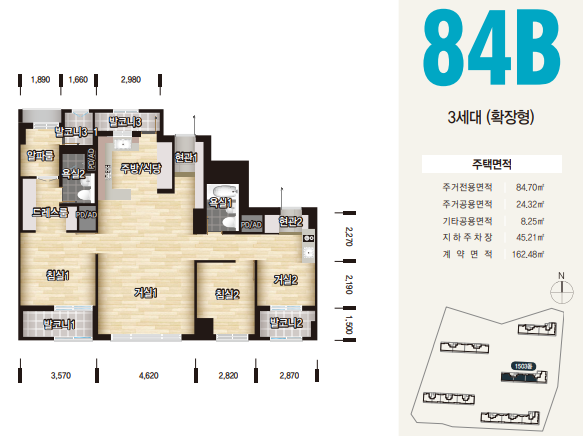64형의 평면도는 84세대수를 지원하며, 신혼부부나 2~4인가족분들에게 추천드립니다.