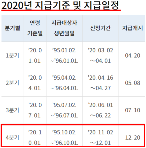 결론부터 말씀드리면 경기도 청년기본소득 4분기 신청자의 지급일은 12월20일부터 지급됩니다.