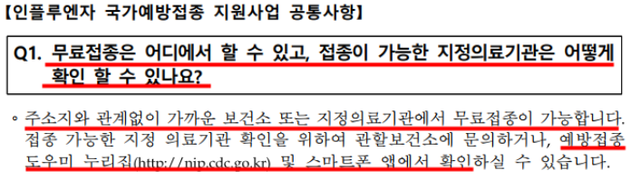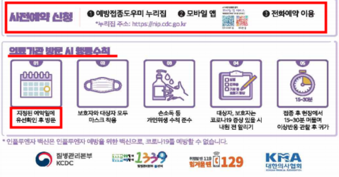 신청이 가능한 독감 예바접종 의료기관과 보건소를 확인하는 방법은?