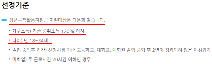 청년 구직활동지원금 신청 자격조건중 기준중위소득표 120%를 확인해서 요건이 충족되는지 확인하세요.