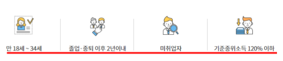 두번쨰로 청년구직활동지원금 나이 조건이 있습니다. 만 18~34세 사이로 청년층이여야 신청이 가능합니다.