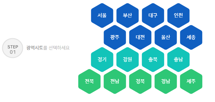 들어가시면 보이는 것처럼 본인의 광역시 단위 주소를 선택하셔야합니다.