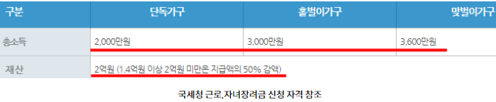 두번쨰. 홀벌이가구의 경우에는 3,000만원 미만이어야합니다.