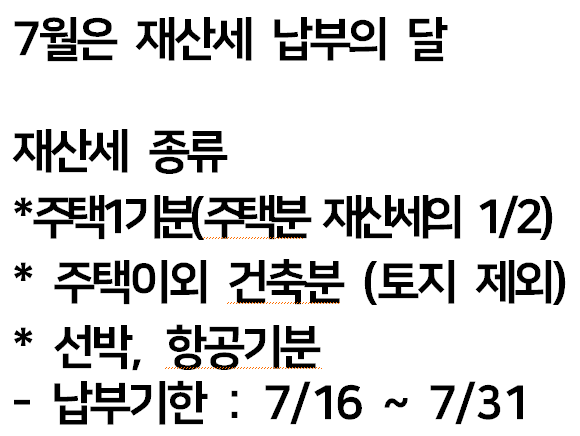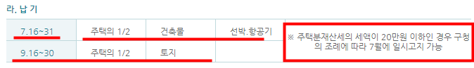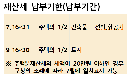 2020년 재산세 납부기간은 7월과 9월에 있습니디.