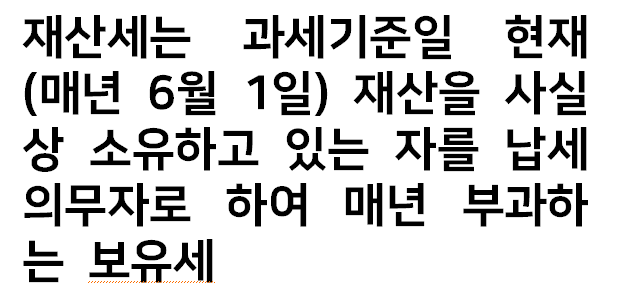 재산세 납부기간인 납기일과 부과기준을 알아보기전에 재산세란 무엇인지 알아보겠습니다.
