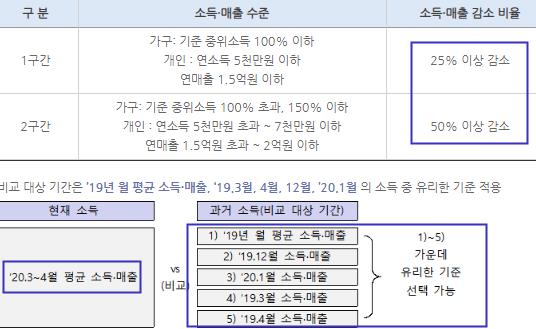 25~50% 이상이 소득이 감소해야합니다.