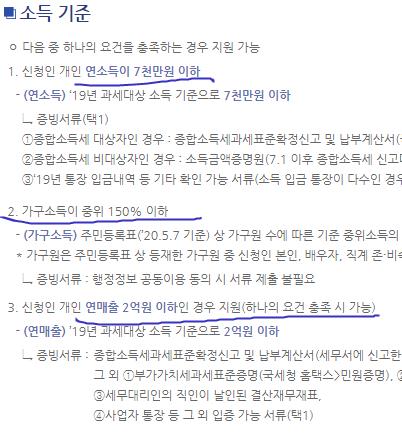 연소득 7천만원 미만이고 연매출 2억미만인