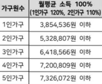 1. 도시근로자 월평균소득 70%(아래 표 참조).