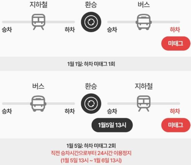 문제는 한달 내에 2번이상 하차시 안찍고 내리면 24시간동안 기후동행카드 사용이 중지됩니다.