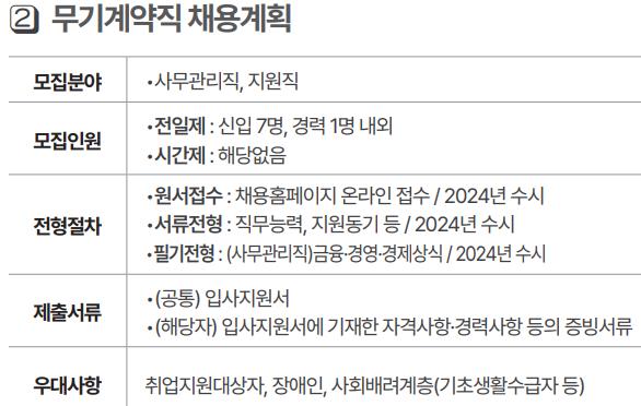 1. 모집 분야 : 무기계약직 (사무관리직, 지원직)