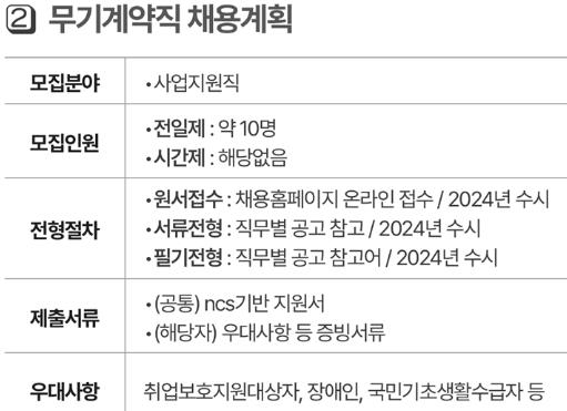 2. 무기계약직 채용 : 10명(연봉 2,671만원).