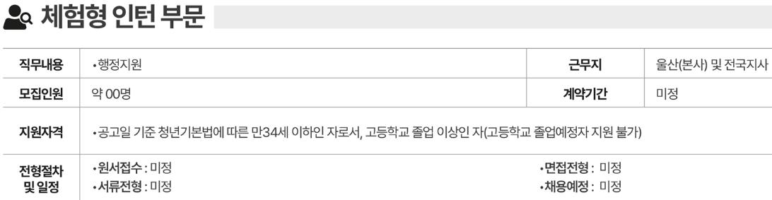 2. 근무지 : 울산 본사, 전국 각 지사.