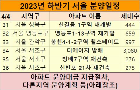 2023년 하반기 서울 아파트 분양 일정표를 만들었습니다.