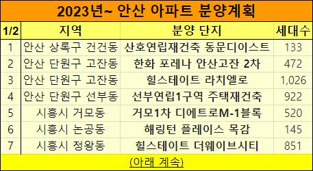 2023년 하반기 안산 아파트 분양계획을 정리했습니다.