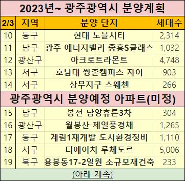 2023년 광주광역시 아파트 분양일정을 정리했습니다.