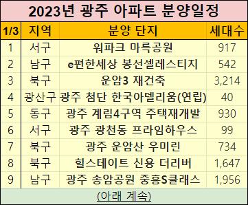 이렇게 2023년 광주광역시에서 분양예정인 아파트들을 정리해서 알려드렸습니다.