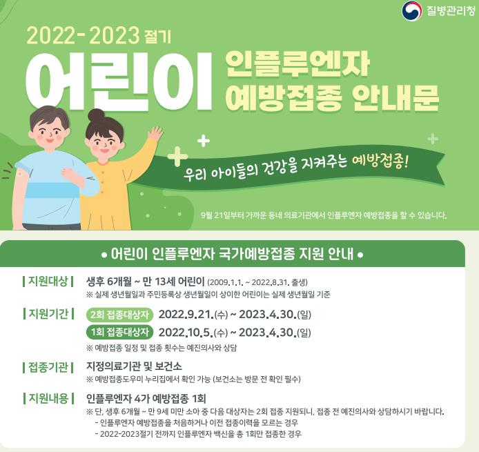 2023년 어린이 독감예방접종은 2023년 4월30일까지입니다.
