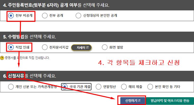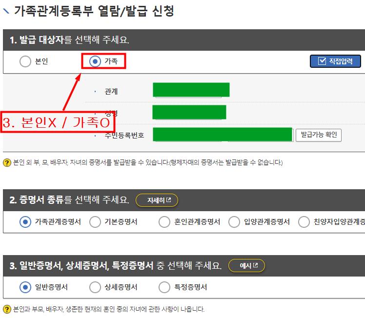 아래 캡쳐화면을 보고 따라하시면 형제나 자매를 포함해서 인터넷 발급할수있습니다.