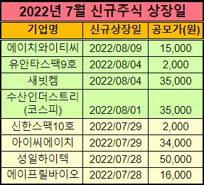 2022년 8월에 신규 상장하는 주식들을 정리했습니다.